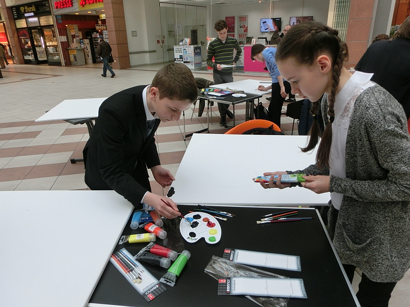 15-30 Schüler, deren Werke ausgewählt werden, werden eingeladen, ihre Werke in einer attraktiven Location in Berlin mit Farben auf eine 1×1 m große Leinwand zu malen. Sie werden dabei von Berlinern Künstlern begleitet. Aus diesen Werken entsteht eine Ausstellung, die öffentlich zu sehen sein wird.