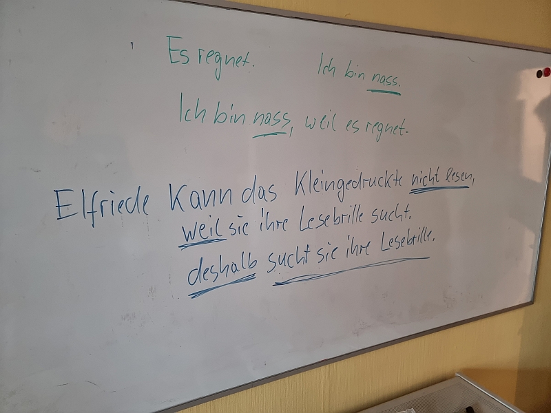 In der B2 Gruppe haben wir heute den Satzbau geübt: Hauptsatz, Nebensatz und Verbindungen von Sätzen mit „weil“, „sobald“, „wenn“ usw.