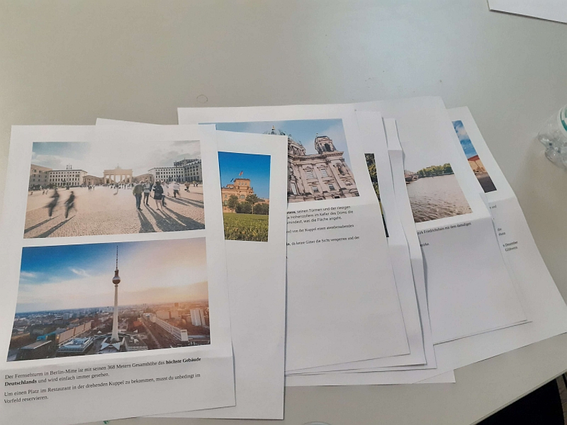 Wir haben Bildbeschreibungen geübt, dazu findet ihr hier eine Anleitung. Außerdem gab es Fragen zur Beugung von Verben.
